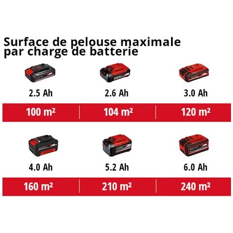- En fonction de la batterie utilisée, le scarificateur est conseillé pour des surfaces jusqu’à 200 m².