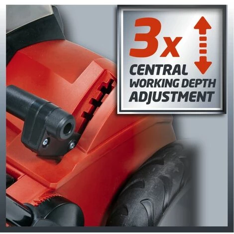 • Livré sans piles sans chargeur La batterie de 36 volts scarificateur GE-SC 35/1 solo Li est un équipement puissant de jardin. plus la scarification à moyennes surfaces bon pour un service de soins de santé fait pelouse. Avec 16 couteaux en acier inoxydable de haute qualité à partir des lames de rouleau de roulement à billes à fond les mauvaises herbes et de mousse avec leurs racines. Ici, le puissant moteur de la Einhell fournit (moteur électrique sans balais), un couple élevé pour l’avancement des travaux en continu et uniforme de bons résultats. Merci à l’ajustement de la profondeur de travail en trois étapes. le scarificateur peut être mis en place bien aux exigences du sol et de la végétation. Recommandé pour les pelouses jusqu’à 400 m². Livré sans batteries et chargeurs. Durée max. Min (3,0 Ah) 15