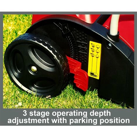 Grâce au moteur puissant de 1200 W le scarficateur enlève le feutre, la mousse et les mauvaises herbes de manière fiable. Le profondeur de travail peut être réglé jusqu’à 9 mm de profondeur, ainsi vous pouvez ajuster la profondeur de travail optimalement à la nature de votre pelouse. La largeur de travail de 31 cm vous permet de verticouper votre gazon rapidement. Les grandes roues et la poignée ergonomique du scarificateur permettent une manipulation confortable et un travail sans effort. La fonction rabattable du manche vous permet un stockage peu encombrant. Avec le puissant scarificateur électrique Grizzly Tools vous obtenez rapidement une belle pelouse verte.
